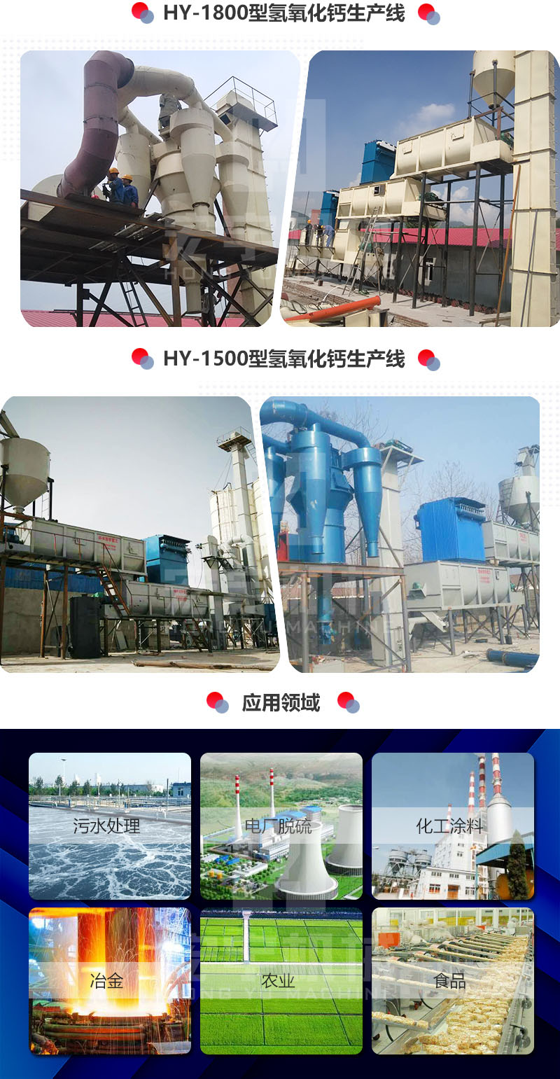 在此背景下,我公司所生產(chǎn)的HY-1200型、HY-1500型、HY-1800型等氫氧化鈣設(shè)備已實(shí)現(xiàn)***化控制和在線實(shí)時(shí)檢測(cè),整套生產(chǎn)線符合要求,產(chǎn)品細(xì)度從200目-600目不等.單機(jī)產(chǎn)量從3T/h------30T/h不等,可根據(jù)用戶不同要求完成不同方案。產(chǎn)品質(zhì)量符合行業(yè)要求。